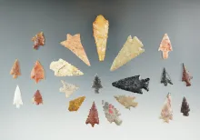 Excellent group of 21 assorted arrowheads found near the Columbia River, Washington. WASHINGTON 100.00