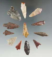 Group of 12 assorted arrow points found in Kittitas County Washington near the Columbia River. WASHINGTON 70.00