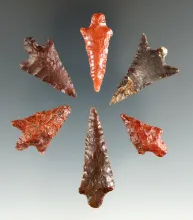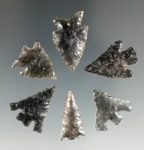 Group of six Wallula points found near the Columbia River, Priest Rapids, Washington. |