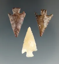 Set of three Columbia Plateau points found near the Entiat River, Washington. Largest is 1 1/16". |