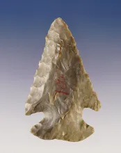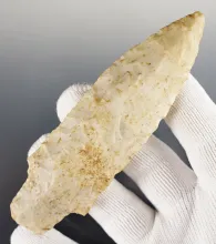 Nice 2 3/8" steeply beveled Dovetail with excellent grinding to the basal area. Found in Ohio. |