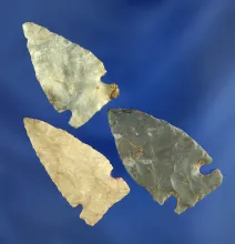 Set of three Intrusive Mound points found in Ohio, largest is 1 1/2". |