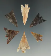 Set of six nice Columbia River Gem Points found by Al Burgess near The Dalles, Wasco Co., OR. |
