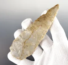 3 1/16" Archaic Dovetail made from Flint Ridge Flint. Found in Franklin Co., Ohio. |