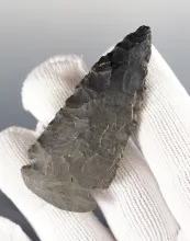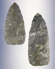 3 1/2" Gorget found in Belmont Co., Ohio. Made from patinated black Slate. OHIO 120.00