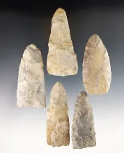 Set of five assorted Paleo knives recovered in Ohio. Largest is a 3 5/16". |