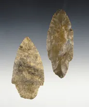 Pair of Adena points recovered in Ohio that are nicely patinated. Largest is 3 5/8". |