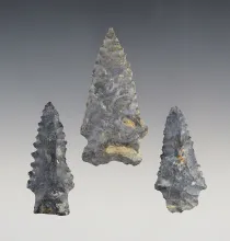 Set of three Coshocton Flint Points with nice serrations. Recovered in Ohio. |