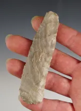 3 1/4" Archaic Bevel made from well patinated Coshocton Flint. Found in Defiance Co., Ohio. |