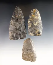 Set of 3 nice Flint Ridge Points found in Ohio. Largest is 2 11/16". |