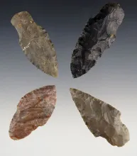 Set of four classic style Adena points recovered in Ohio. Largest is 2 3/4". |