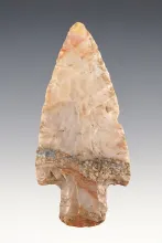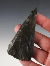 Steeply beveled 3 3/4" Archaic Knife found in Ohio. Nicely flaked from Coshocton Flint. |
