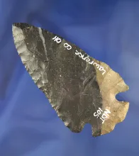 4" Flint Ridge Flint Sidenotch found in Ohio. Base has been broken and glued. |