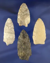 Set of 4 Transitional Paleo Points found in Ohio. Largest is 2 5/8". |