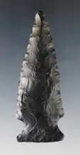 3 1/16" Classic styled Archaic Fishspear made from black Coshocton Flint. Morrow Co., Ohio. |