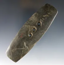 Rare 4 3/4" well patinated 3-Hole Gorget found in Ohio. Shows excellent age on the surface. |