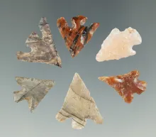 Set of six Columbia Plateau points found near the Columbia River, largest is 7/8". |