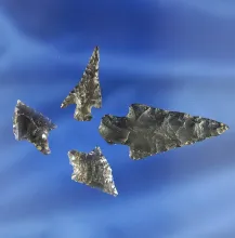 Set of four nice Oregon Obsidian Arrowheads. Largest is 1 11/16". |