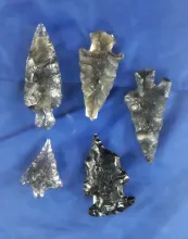 Set of five assorted Obsidian Arrowheads found in Oregon. Several are very nicely translucent. |