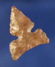 1 15/16" thin and well flaked Snake River Dart made from attractive material found in Oregon. |