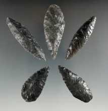 Five Cascade Leaf Blades made from Obsidian. Longest is 2 1/2". Found in the Great Basin, OR. |