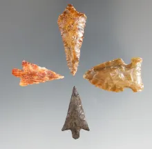 Set of four Columbia River arrowheads, largest is 1 9/16". |