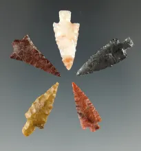 Set of 5 Assorted Arrowheads, largest is 1 1/8". found near the Hood River, Oregon. |
