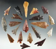 Group of 20 assorted Columbia River arrowheads, largest is 1 5/8". | OREGON | 155.00 | |