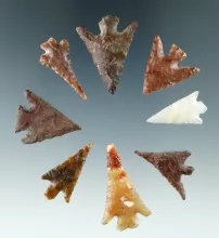 Set of eight Columbia Plateau points found near the Columbia River by Norma Berg. Largest is 1 1/8". |