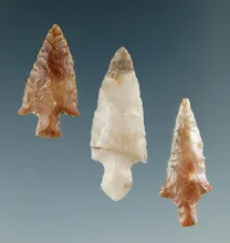 Set of three assorted Columbia River points, largest is 1 1/8". Ex. Dewey Schmid collection. |