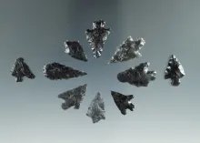 Group of ten Calapooya Points, longest is 1", found near Fern Ridge Reservoir, Eugene, Oregon. |