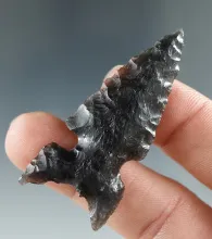 2" Northern Sidenotch, "Fox Ear", made from Obsidian. Found in the Great Basin, Oregon. |