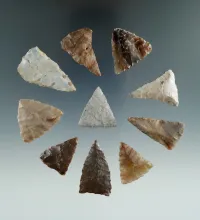 Group of ten Triangle Points, longest is 1 3/8", found near the Columbia River. |