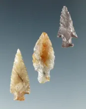 Set of three nicely flaked Columbia Plateau points, largest is 3/4". |