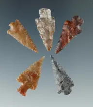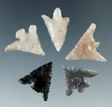 Set of five assorted Columbia River arrowheads, largest is 15/16". | OREGON | 40.00 |