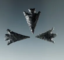 Set of three obsidian Columbia Plateau points, largest is 1". | OREGON | 60.00 | |