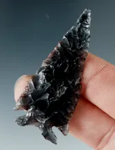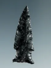 1 1/2" Stemmed Point with an ariaculated base, made from Obsidian, Great Basin, Oregon. |
