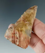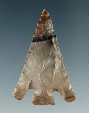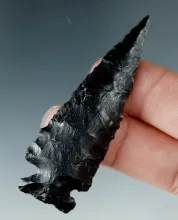 2 7/16" Cornernotch made from striped Obsidian with a curve to the blade. Found in Oregon. |