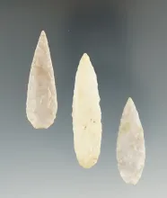 Set of three nice Nodena leaf points found in Texas/Arkansas. Largest is 2". |