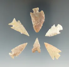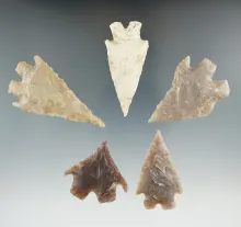Set of five assorted points found in Texas, largest is 2 5/8". |