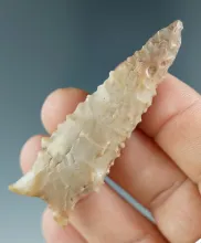 3 1/2" Pedernales found in Kerr Co., Texas. One barb has been restored. Rogers COA. |