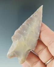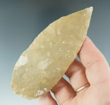 Excellent flaking in style on this 3 1/2" Pedernales points found in Central Texas. |
