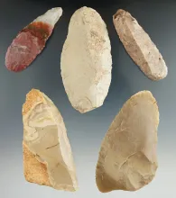 Set of five W. Texas flake Knives with excellent edge work. One is made from Alibates. TEXAS 35.00