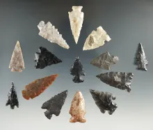 Group of 14 assorted Texas arrowheads, largest is 1 3/8". TEXAS 110.00
