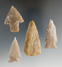 Set of four assorted points found in Texas, largest is 2 7/16". |