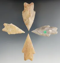 Set of four Pedernales points found in Texas, largest is 2 5/8". |