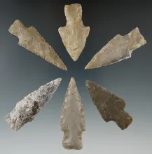 Ex. Museum! Set of 6 Carrollton Points found in Texas, largest is 2 1/2". |