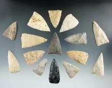 Group of 15 triangular leaf points found in Texas, largest is 2 1/8". | TEXAS | 60.00 | |