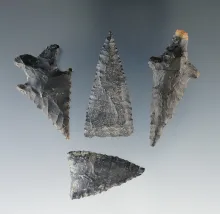 Set of four Texas area flaked points, largest is 1 7/8". |