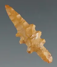 1 7/16" Duran made from tan chert, found in Starr Co., Texas. Comes with a Rogers COA. |